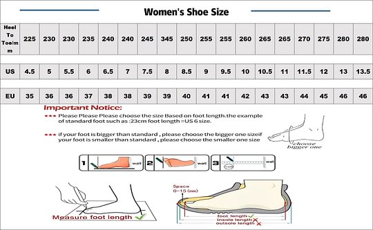 Note2: If you have wider feet, it is recommended to buy one size larger.